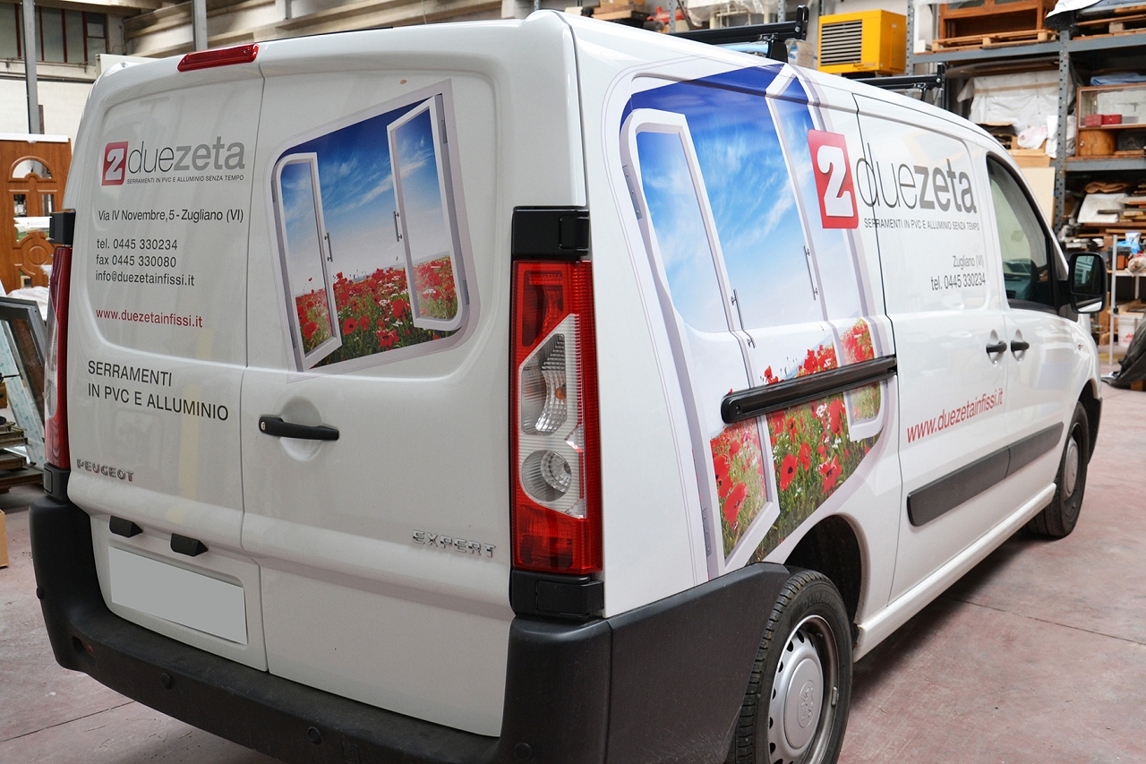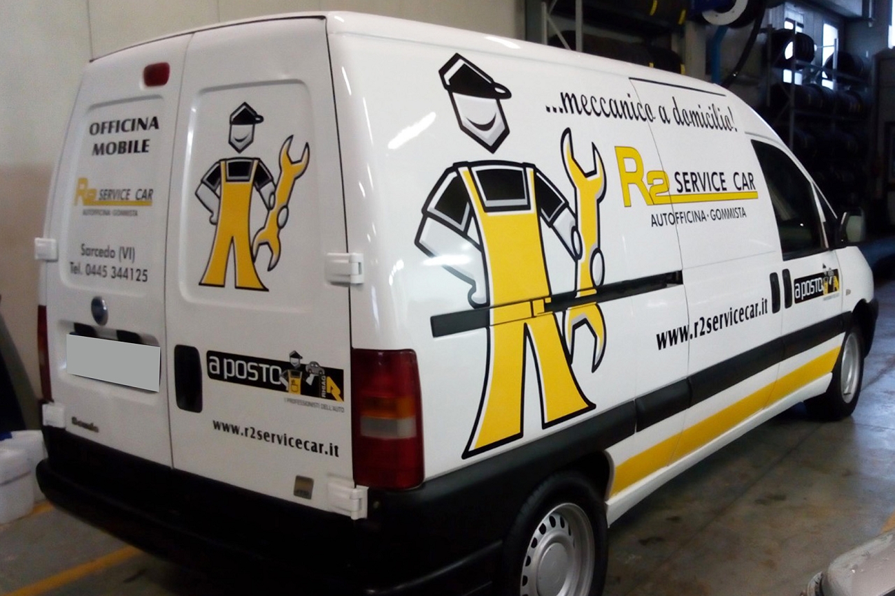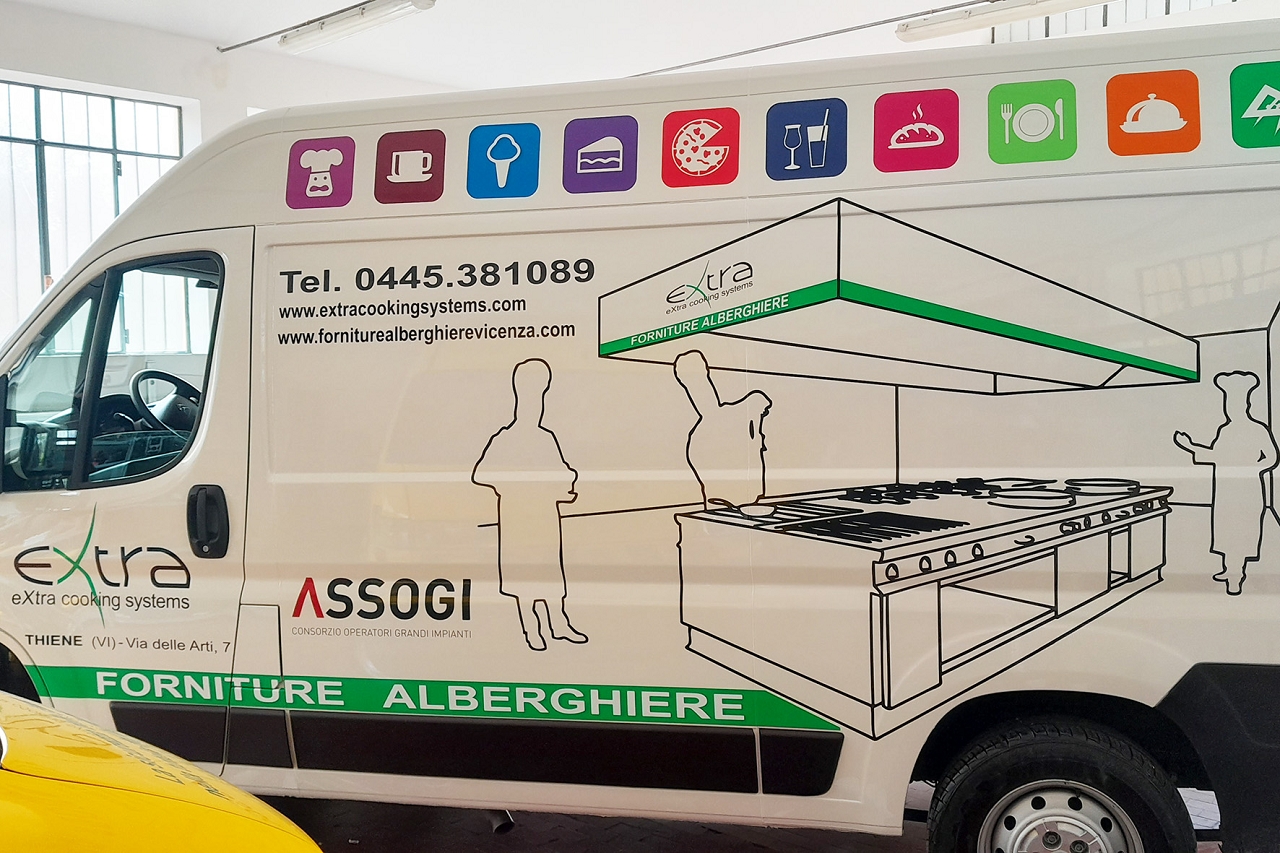 Decoriamo veicoli mediante applicazione di scritte adesive prespaziate e stampe digitali di qualità fotografica.